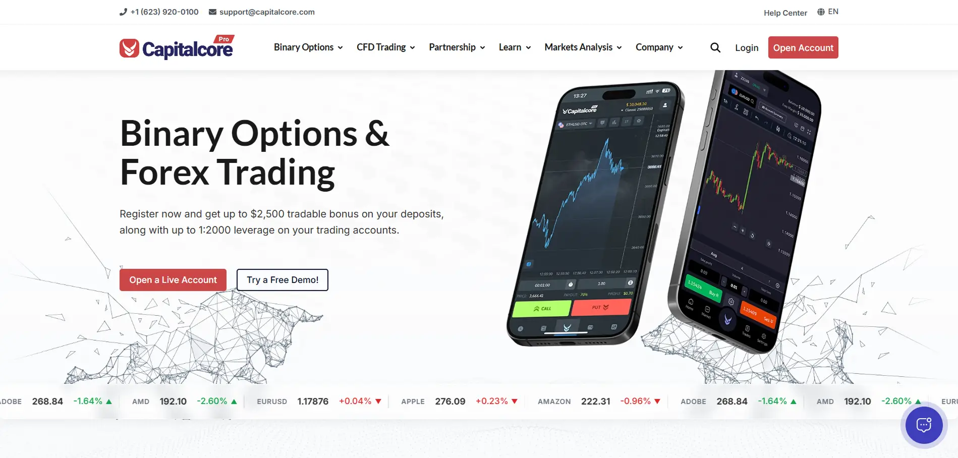 Capitalcore is an offshore broker providing binary options and CFD trading across forex, commodities, indices, stocks, and cryptocurrencies. It features low minimum deposits, proprietary trading platforms, and competitive payouts, making it suitable for both new and experienced traders, though it operates under offshore regulation..