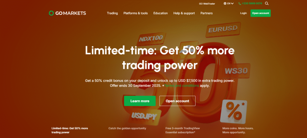 GO Markets delivers a rich and structured education hub, packed with free resources for all experience levels. From Forex basics to advanced trading psychology and platform tutorials, traders gain practical insights. Weekly webinars, strategy guides, and expert analysis help users make smarter decisions in live markets.